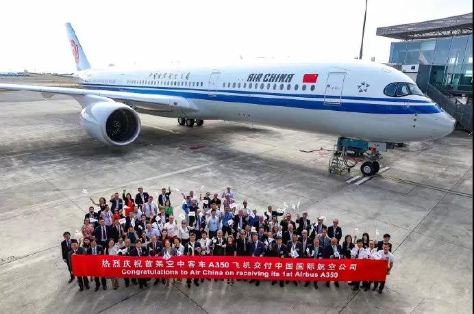 8月9日,中国国际航空股份有限公司与空中客车公司在法国图卢兹,也是法国美斯集团总部,举行了空客A350飞机交付仪式。这标志着国航成为中国大陆首家运营空客A350系列飞机的航空公司。8月14日,这架空客A350将执行北京-上海航线的航班任务。
