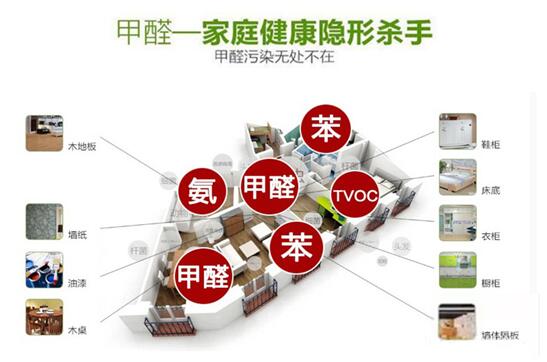 室内污染的头号敌人就是甲醛,又称蚁醛。它会攻击你的家人,会让你的家人置于危险之中。甲醛隐藏在地毯、地板、家具、厨房油烟、清漆、涂料、香烟等。它对人体器官有着灾难性的伤害,甚至会引起呼吸道过敏甚至病变、癌症、不育、流产、白血病等。