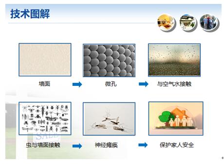 实验证明,美斯涂料不仅能达到驱虫蚁的功效,甚至还能起到灭虫的效果,据美斯工程师Martine Falquier介绍,这是美斯的最新研究的灭虫功能,原理是墙面漆是多孔的,类似人体皮肤上的毛孔,水分可以穿过这些微孔,在涂膜形成过程中,具有灭虫功能的共聚物会随着水分穿过这些微孔,当水分挥发后,虫子一旦接触到涂料表面时,虫蚁的神经系统就会受到破坏,从而使其瘫痪。