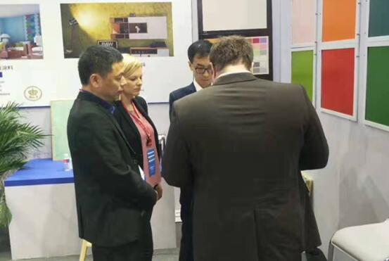 2019年中国建博会(上海)法国美斯展台,首次亮相中国市场的圣戈班墙布还吸引到了德国维图蓝中国区产品总监和技术总监的关注,维图蓝技术总监Daniel Wolf也对圣戈班墙布进行了高度的赞美和认可。