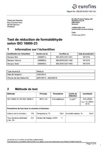 法国Decopur涂料分解室内甲醛真实性通过了国内外的一系列验证: