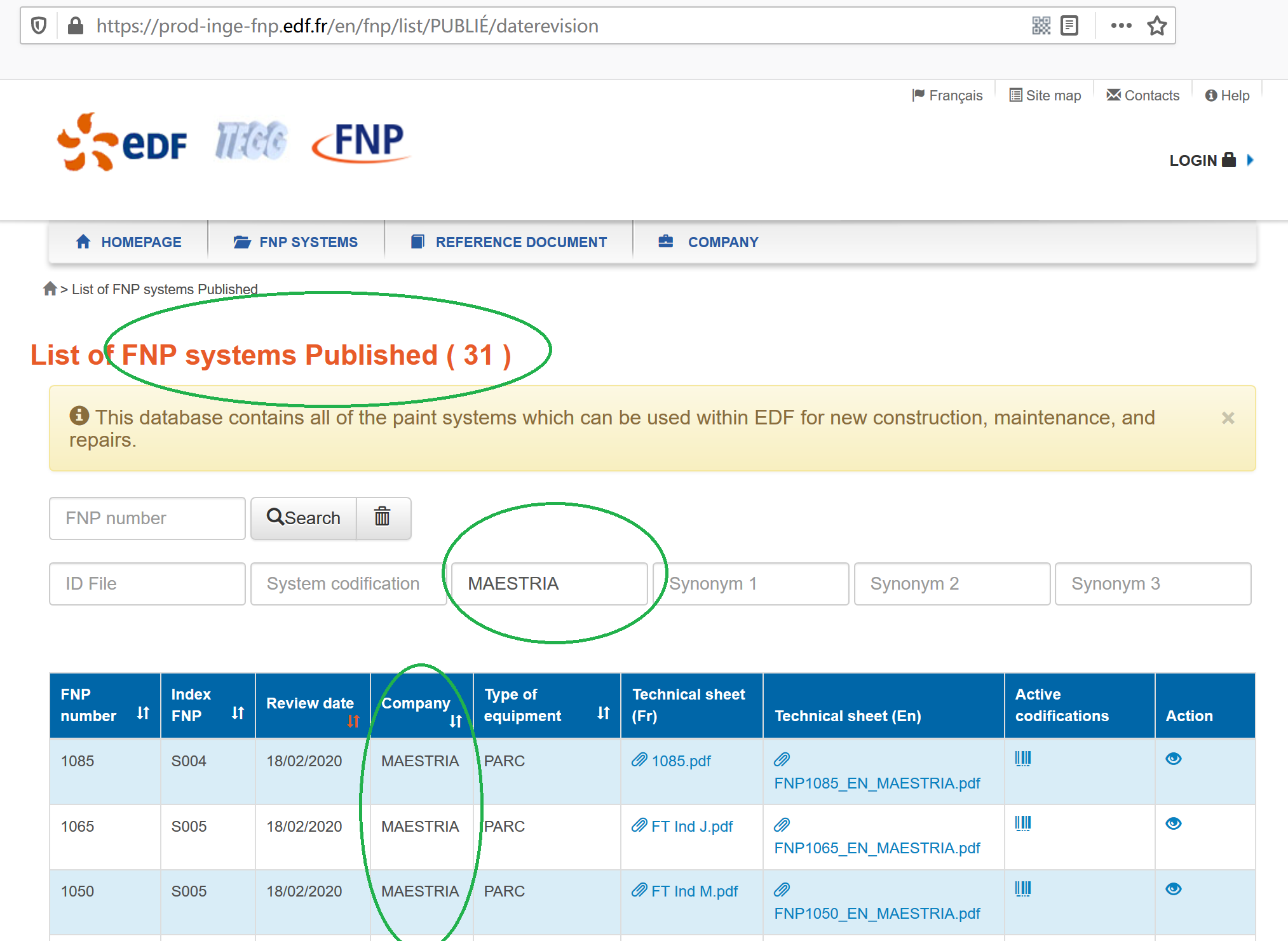 EDF官网显示,通过EDF和CEA认证的核电涂料系统数量,法国美斯第一,美国PPG第二,法国MAX第三,如下图所示