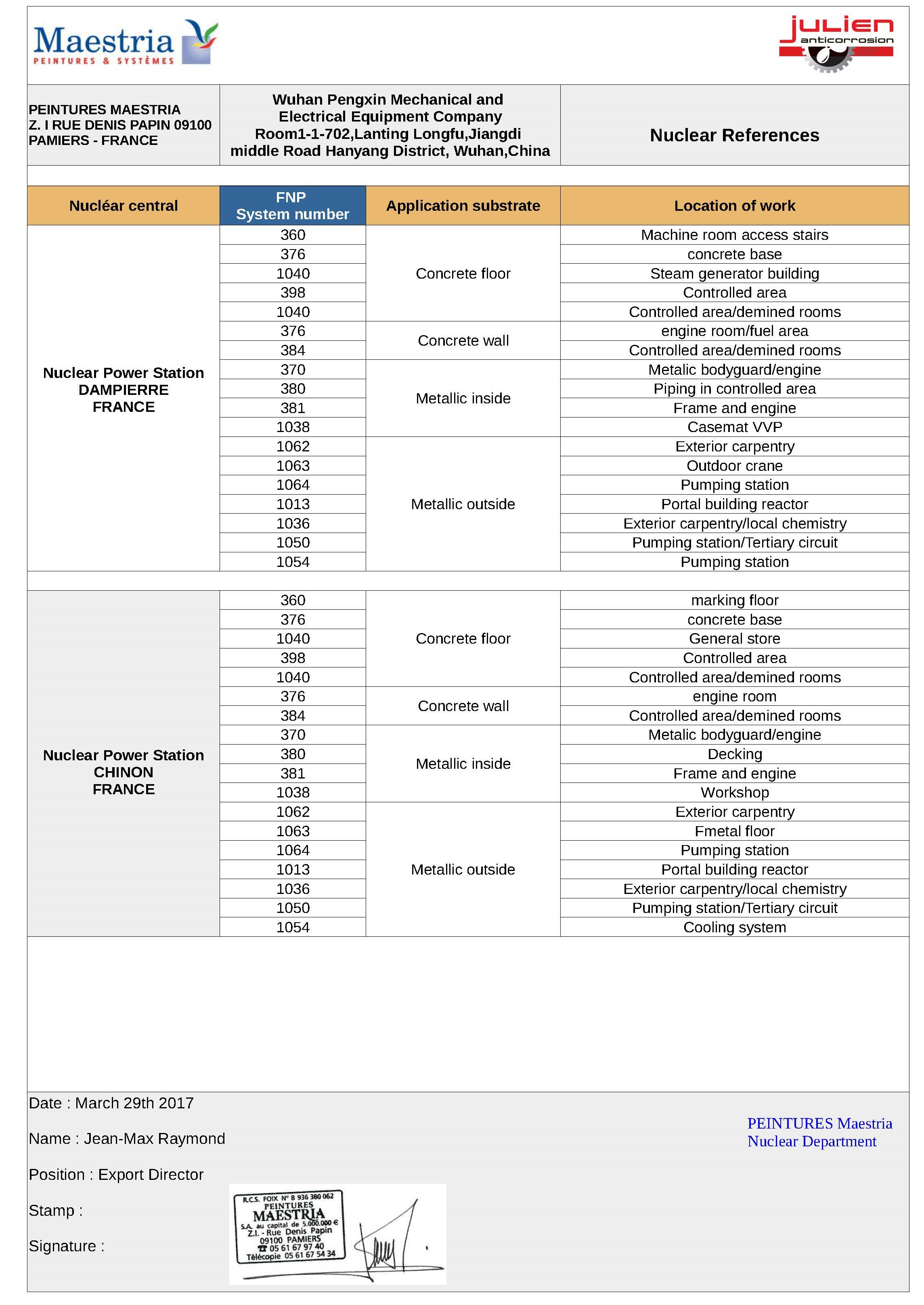 EDF官网上公布的通过EDF和CEA(法国原子能协会)认证的核电涂料清单中,有来自世界知名涂料厂家达11家之多。