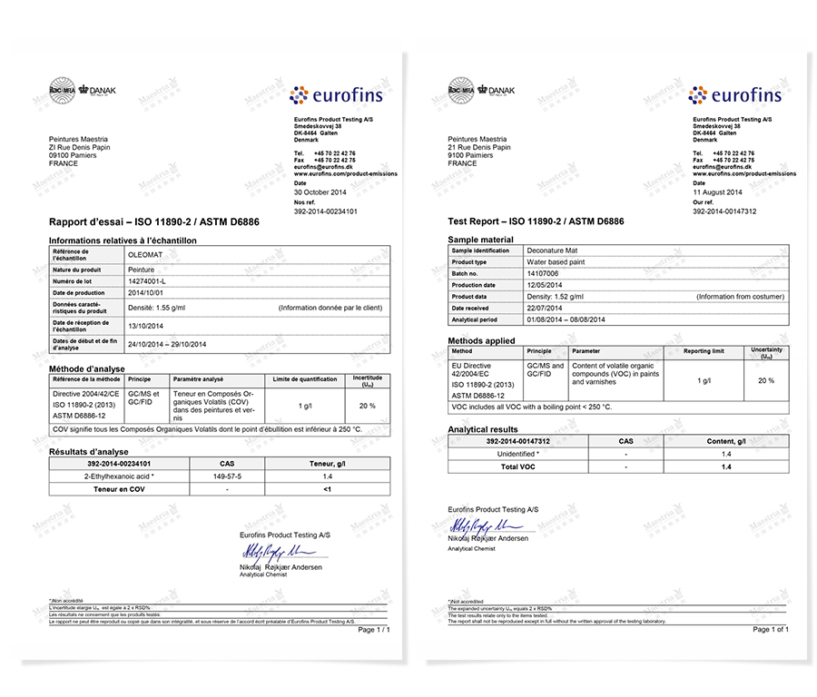 目前市场上的涂料大多属于符合标准的低VOC产品,如芬兰芬琳约克 VOC≤30 g/L;宣伟环康儿童室内涂料 VOC≤50 g/L等等,而VOC接近于零的产品却很少。然而,以多功能性、健康环保涂料闻名于世的法国美斯集团,2005年研发的欧拉天然植物涂料,原料萃取豆油、松香等天然树脂,无添加,VOC总含量≤1g/L趋近于零,是HEQ《法国绿色建筑评估体系》项目的理想面漆, 2011年起一直稳居法国涂料销冠。