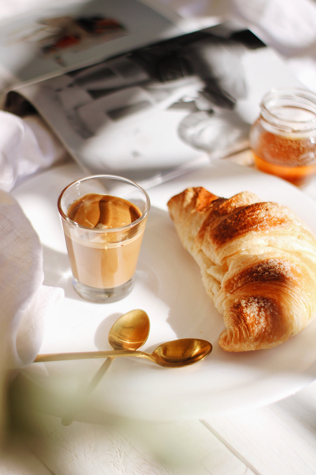 说起牛角包,就不得不提到奥黛丽赫本的一部红遍全球的电影《蒂凡尼的早餐》。影片中的赫本身着黑色礼服裙佩戴华丽珠宝,在清晨纽约的第五大道从一辆缓缓驶来的出租车里走下来,优雅地走到橱窗前,右手从牛皮纸袋中拿出牛角包咬上一口,左手则是一杯热咖啡,就这样静静地凝望着橱窗里的珠宝。