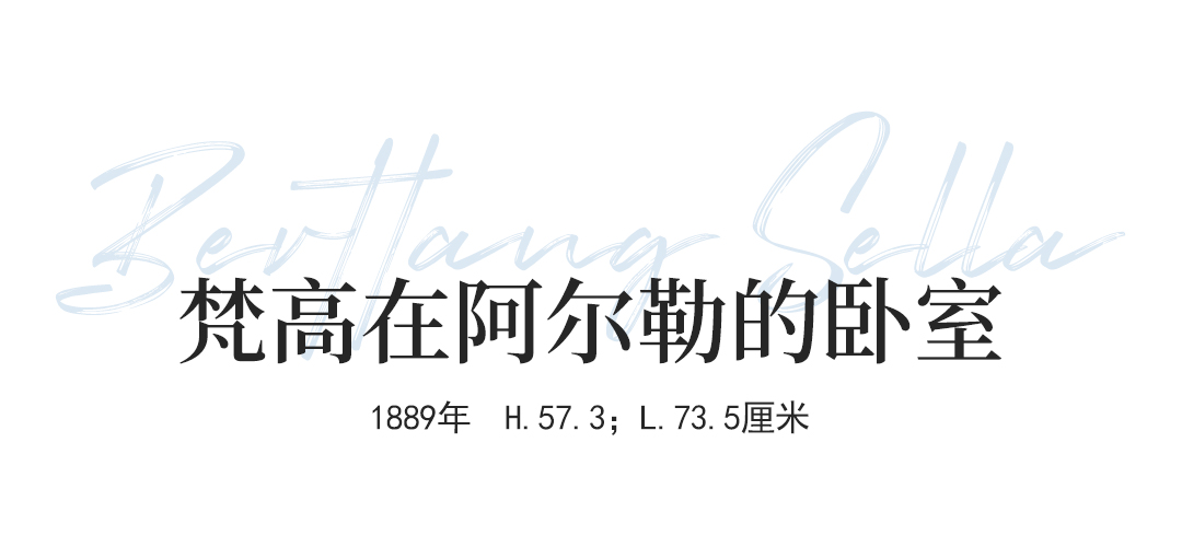 《梵高在阿尔勒的卧室》的5个版本中都是同样绘制了梵高在阿尔勒时的卧室模样,床、座椅及家具等 。作品里深藏着梵高从精神和物质上对“归宿”的不懈追求。梵高希望该作能够表达超然的静谧、闲适和安宁,可事实上该作品却显得有点焦躁,令人晕眩。画中的墙壁上挂着一些梵高的作品,让观赏者从中洞悉到他对艺术的期望 。