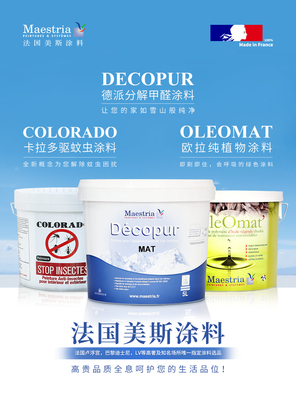 法国美斯涂料,法国国家专利,中央电视台权威背书!法国卢浮宫,巴黎迪士尼。。。。唯一涂料选品。原装原罐纯进口,高贵品质全息呵护您的生活品味。