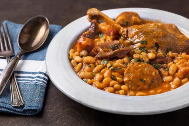 主要食材为白扁豆,油封鸭,香肠,蔬菜,部分还有羊肉、排骨等,卡酥来砂锅的烹饪过程非常复杂,整道菜要烹煮一整天再焗烤过才能完成。