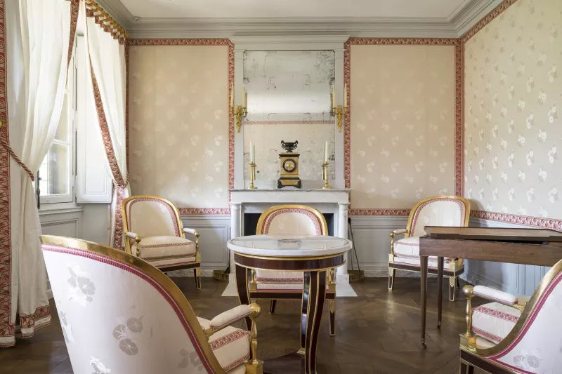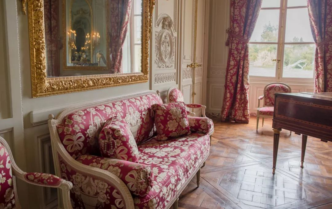 属于小特里亚农宫的,是跟其它宫殿截然不同的气质:它没有那么奢华,天花板更低,房间也更小。但整个宫殿使用材质和装饰的品质甚至比凡尔赛更甚一筹,建筑由Ange-Jacques Gabriel布局设计。家具由Jacob定制。玻璃装饰由凡尔赛玻璃画廊供应商Saint-Gobain提供。
