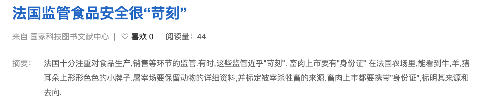法国的严谨还体现在对食品安全、婴幼儿奶粉、空气污染的监管上,有些标准甚至比欧盟还要高,在百度学术里搜索“法国食品安全”等关键词,可以找到很多这方面的论文: