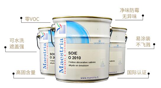 就以欧洲热门的一款厨卫漆为例,美斯的SOIE系列,就是法国热门的一款厨卫漆产品,除了防水耐擦防渗透等功能外,经国家检测机构检测,这款涂料的VOC未检测(含量≤1g/L),能让你充分享受到健康环保的生活;净味防霉的功效能让厨卫免遭霉味;另外还有像方便涂刷,让喜欢DIY的小伙伴可以充分享受自己粉刷房屋的无穷乐趣,同时它属于高固含量涂料,其最大作用就是可以更好的保护漆面,延长墙面的使用寿命。