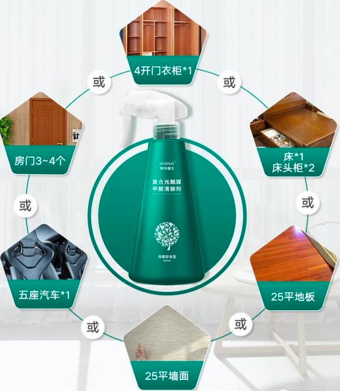 现在国内的光触媒产品大多为喷剂,喷在衣柜等处,通过在表面形成一层保护膜达到分解甲醛的目的。