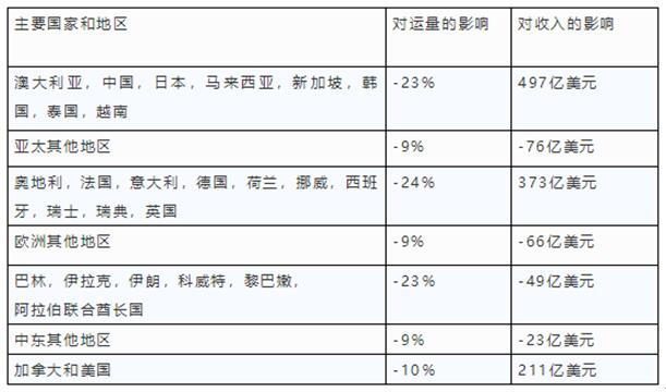 民航业客流量大幅缩减,而根据国际航协(IATA)的首席经济学家布莱恩•皮尔斯(Brian Pearce)的预测:“根据目前的情况,行业可能会经历类似于“ U形”复苏的经历,而不是例如2002-03年非典爆发后的“ V形”复苏。”同时IATA表示:第三季度全球运力将下降约33%,第四季度将下降10%
