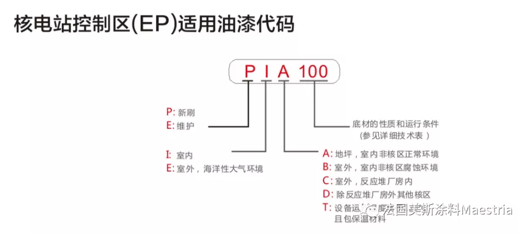 核电涂料应用,为确保安全性能,均有涂装技术规范书。而在规范书中,根据不同区域,不同温度要求,不同表面都严格规定有不同的代码。如下图: